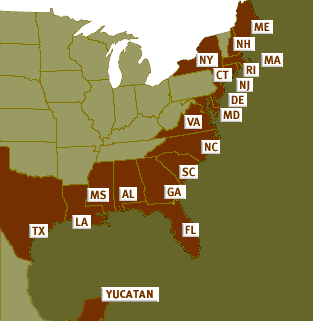 Click on a state or country name for horseshoe crab sighting locations.