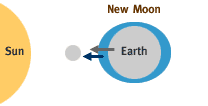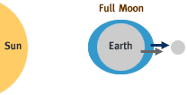 In the diagram to the left, you can see that the gravitational attraction of the Moon produces two tidal bulges on opposite sides of the earth. The liquid that is closest to the Moon experiences the greatest gravitational force and is pulled away from the Earth (towards the Moon)-- this creates one bulge.The bulge on the opposite side is created because the Earth is also pulled towards the Moon by gravity.